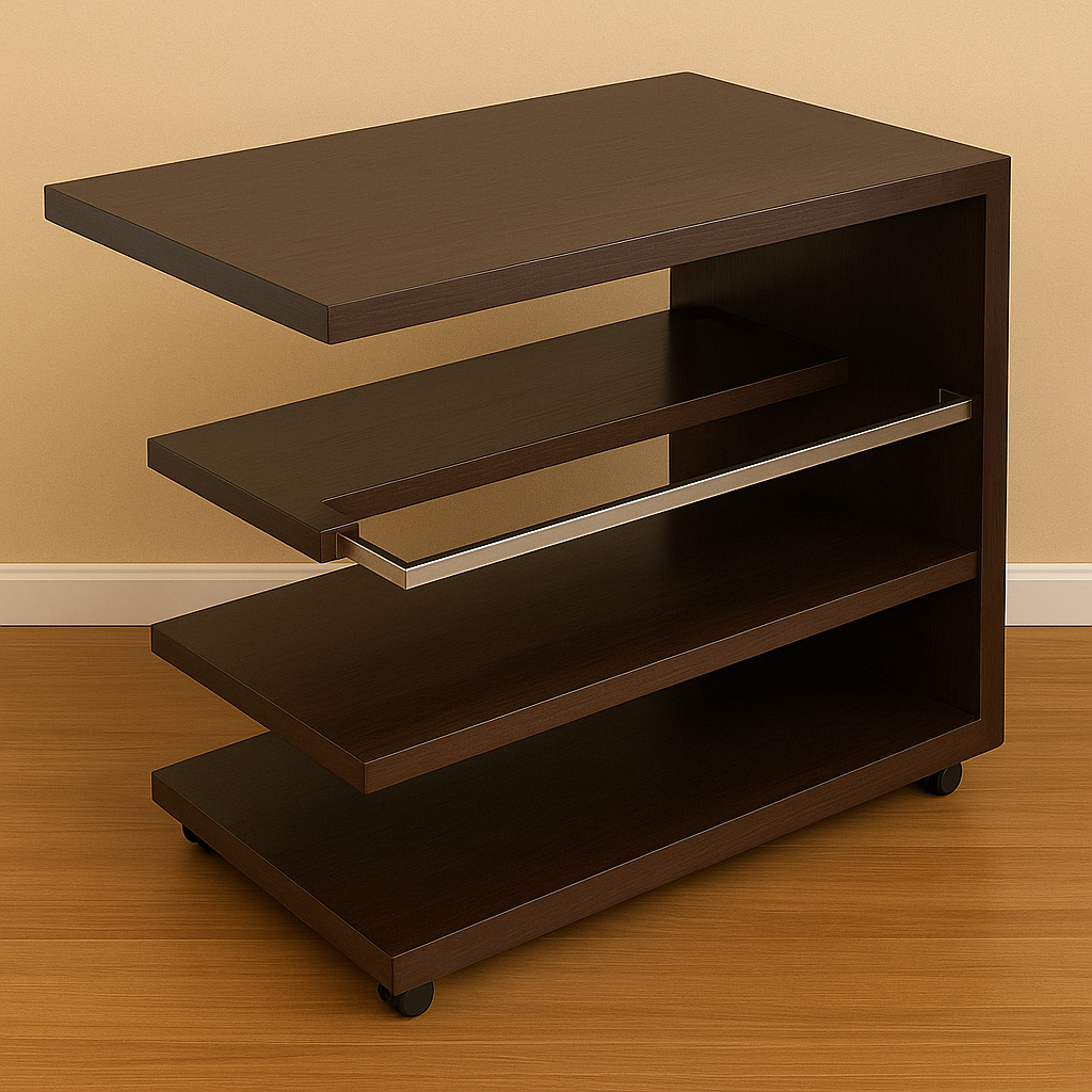 The Ember Fold tea trolley is a refined and practical addition to your space, designed with sleek straight lines and a sophisticated dark brown finish. This three-level trolley offers ample storage and serving space, with two main trays for your tea essentials and a dedicated portion specifically designed to securely hold bottles, ensuring everything stays in place. The sturdy construction and smooth-rolling wheels make it easy to move the trolley wherever it’s needed, whether you’re entertaining guests or enjoying a quiet tea break. With its clean, minimalist design and functional layout, The Ember Fold combines elegance with convenience, making it the perfect blend of style and utility for your home.