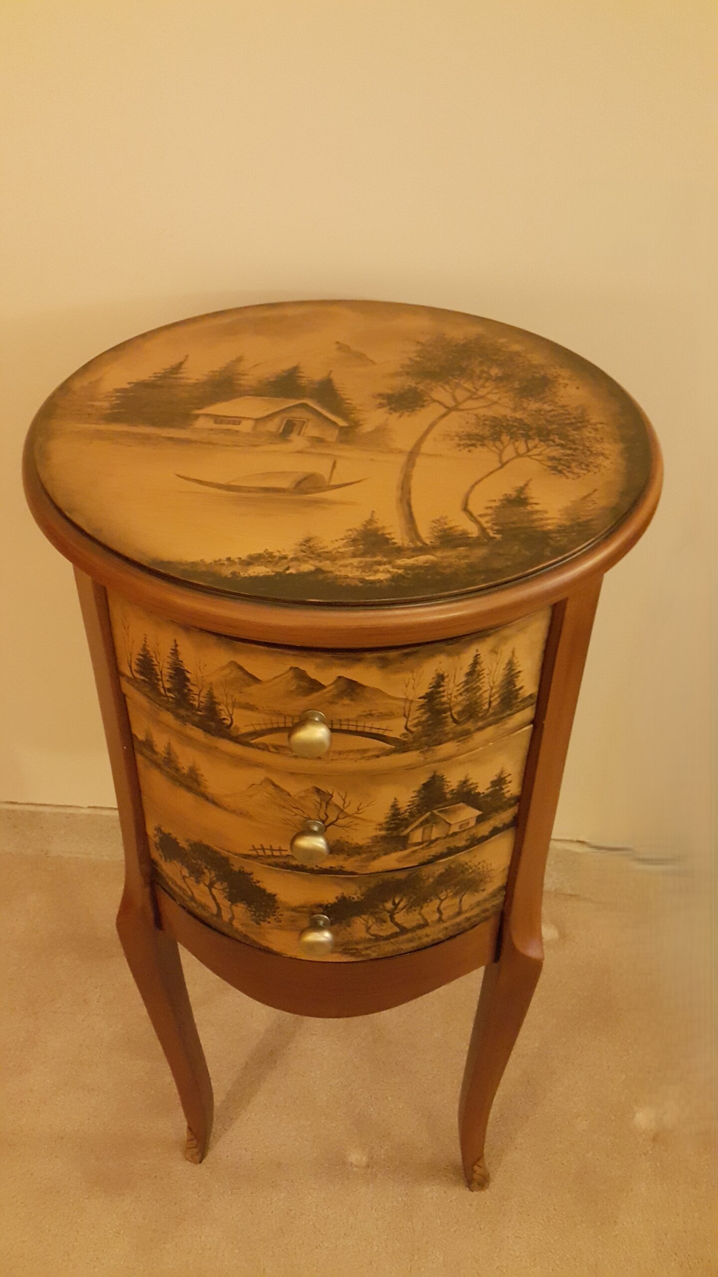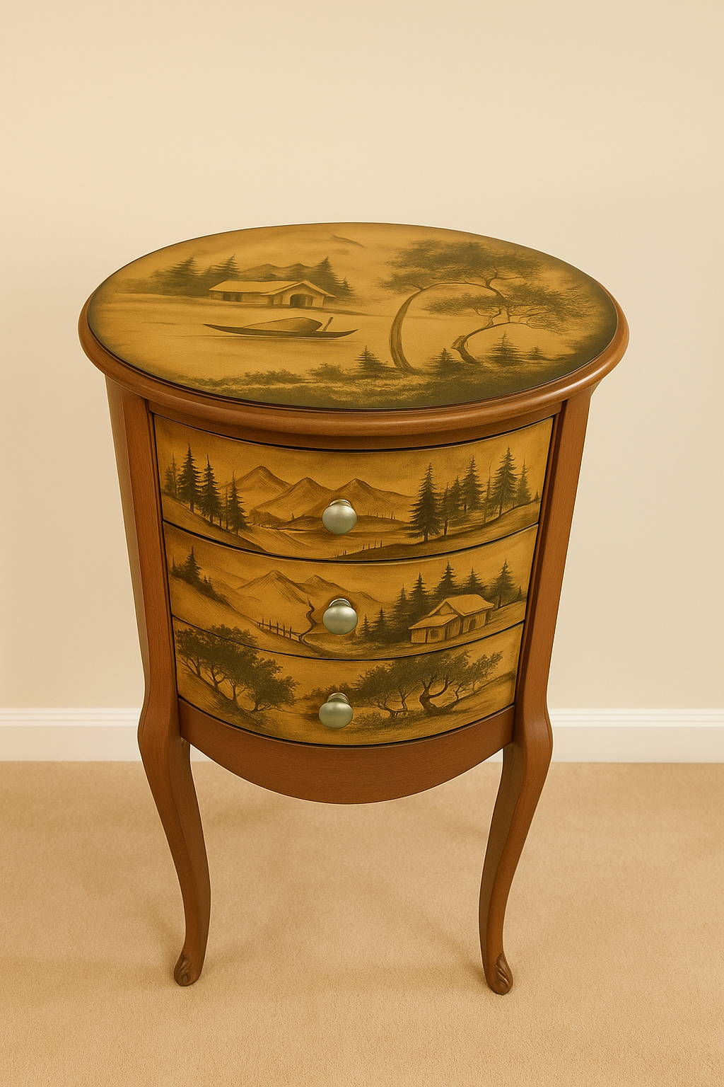 The Painting Delight round console table is where artistry effortlessly blends with functionality. With three elegantly designed drawers, it provides both generous storage and captivating visual appeal. Each surface of the console is meticulously hand-painted, showcasing intricate designs and vibrant hues that infuse any space with artistic charm. The delicate brushstrokes and remarkable attention to detail elevate this piece into a true masterpiece, transforming it from a practical furnishing into a stunning statement of beauty and creativity in your home
