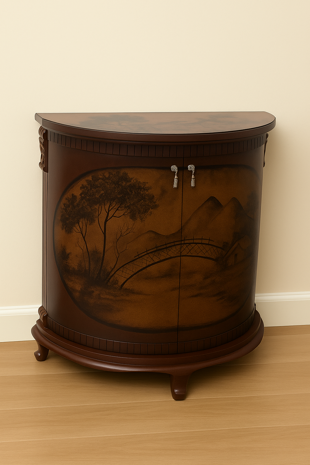 The Phoenix Drive console is a captivating blend of artistry and functionality, designed to elevate any space with its stunning presence. Featuring a classic D-type table shape, this piece boasts a hand-painted surface that showcases intricate, vibrant patterns, bringing a touch of artistic elegance to your home. The console’s two front swing doors open to reveal a generous amount of storage space, making it perfect for keeping your essentials organized and out of sight. Finished in a rich brown hue, the console’s warm tone adds depth and sophistication, effortlessly complementing a variety of interior styles. Whether placed in a living room, hallway, or entryway, the Phoenix Drive console not only offers exceptional storage but also serves as a bold statement piece that exudes timeless charm and creative flair.