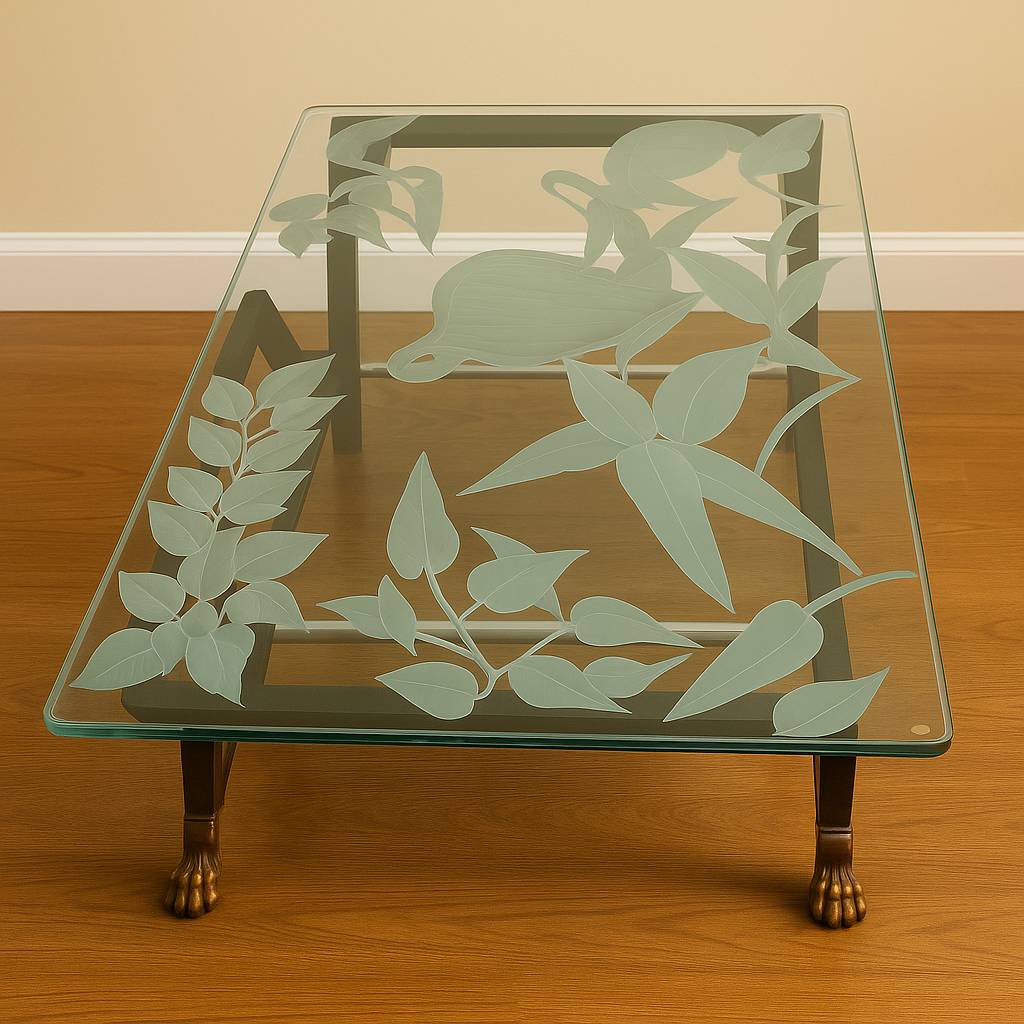 The Riverside Haven is a captivating centre table that seamlessly blends nature’s elegance with modern craftsmanship. Its supporting structure, expertly crafted from rich rosewood, takes the form of graceful arches, creating a timeless yet contemporary aesthetic. The arches are reinforced with sleek steel rods for added stability, ensuring durability without compromising on style. The tabletop, made from 12mm thick glass, showcases an intricate engraving of a serene riverside scene, offering a visual escape and adding a touch of tranquility to any room. This table is not just a functional piece, but an artistic focal point that evokes the peaceful essence of nature.