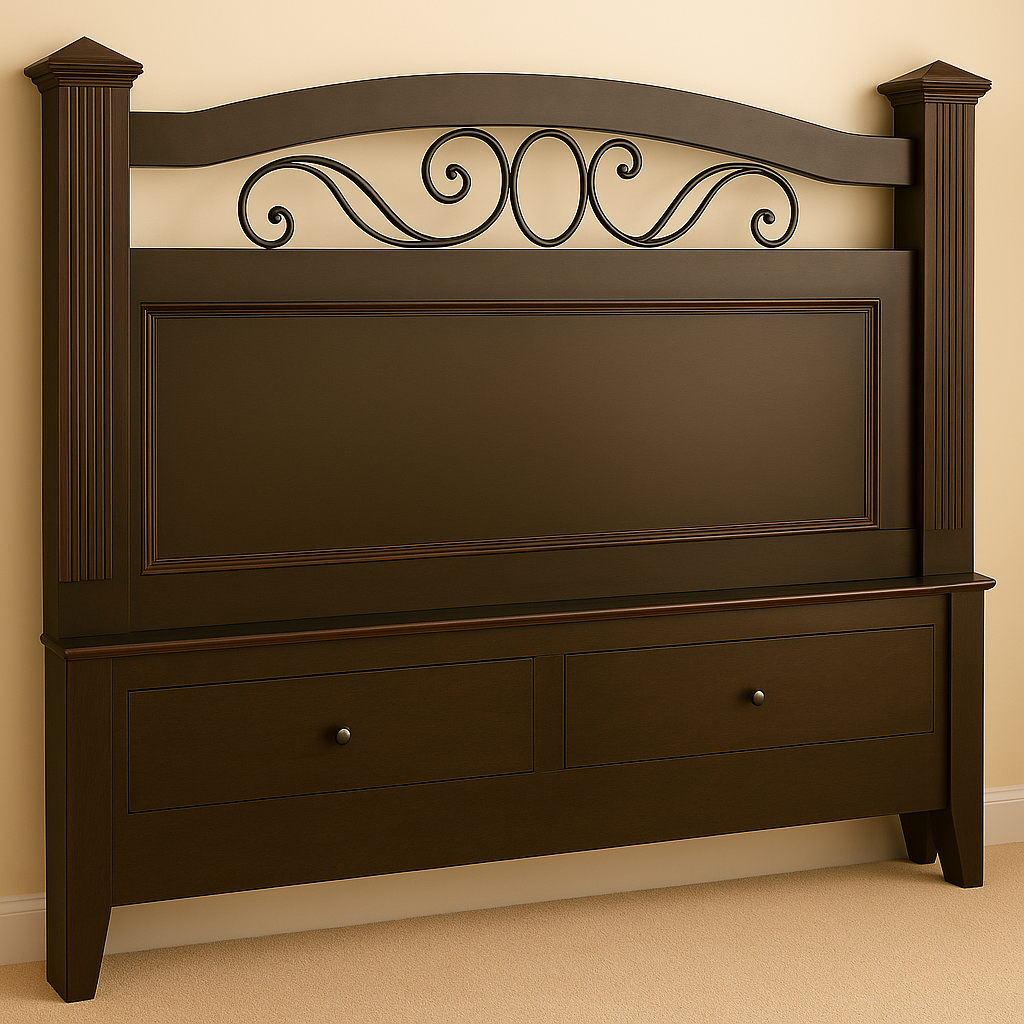 The Vanta single bed exudes a perfect blend of intricate craftsmanship and simplicity. The headboard is beautifully adorned with a wrought iron pattern, adding a touch of artistry and elegance to the design. The footboard, in contrast, maintains simple straight lines. The side pillars of the headboard are crafted from rosewood, their straight line details enhances the overall sophisticated appeal.